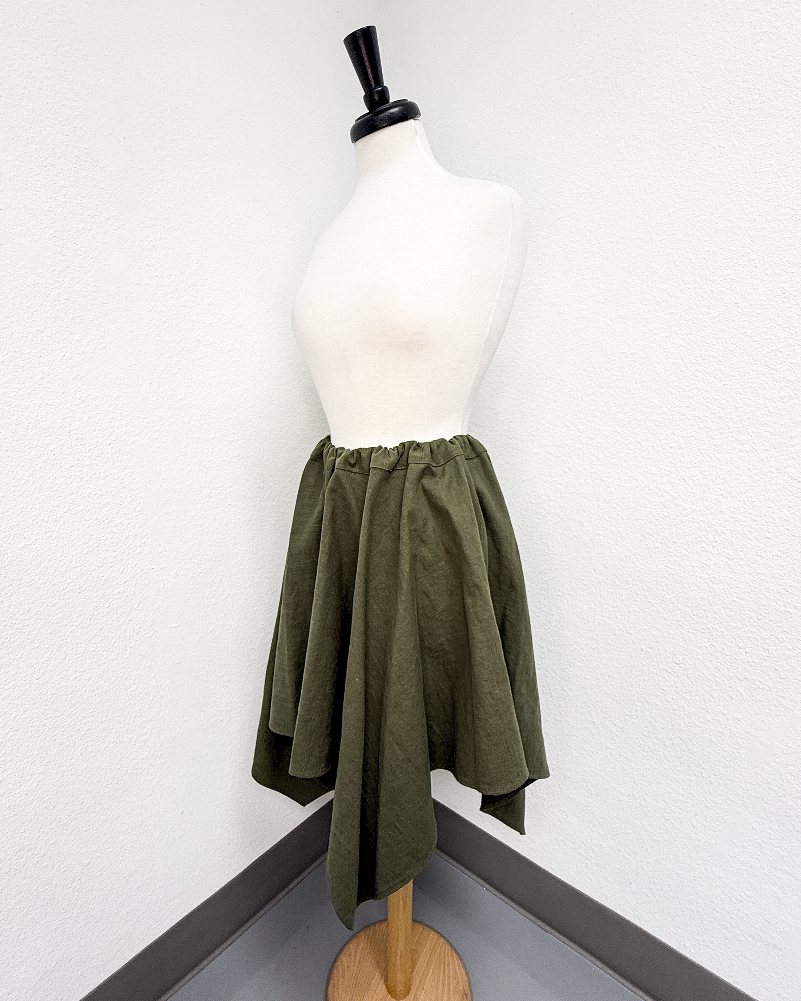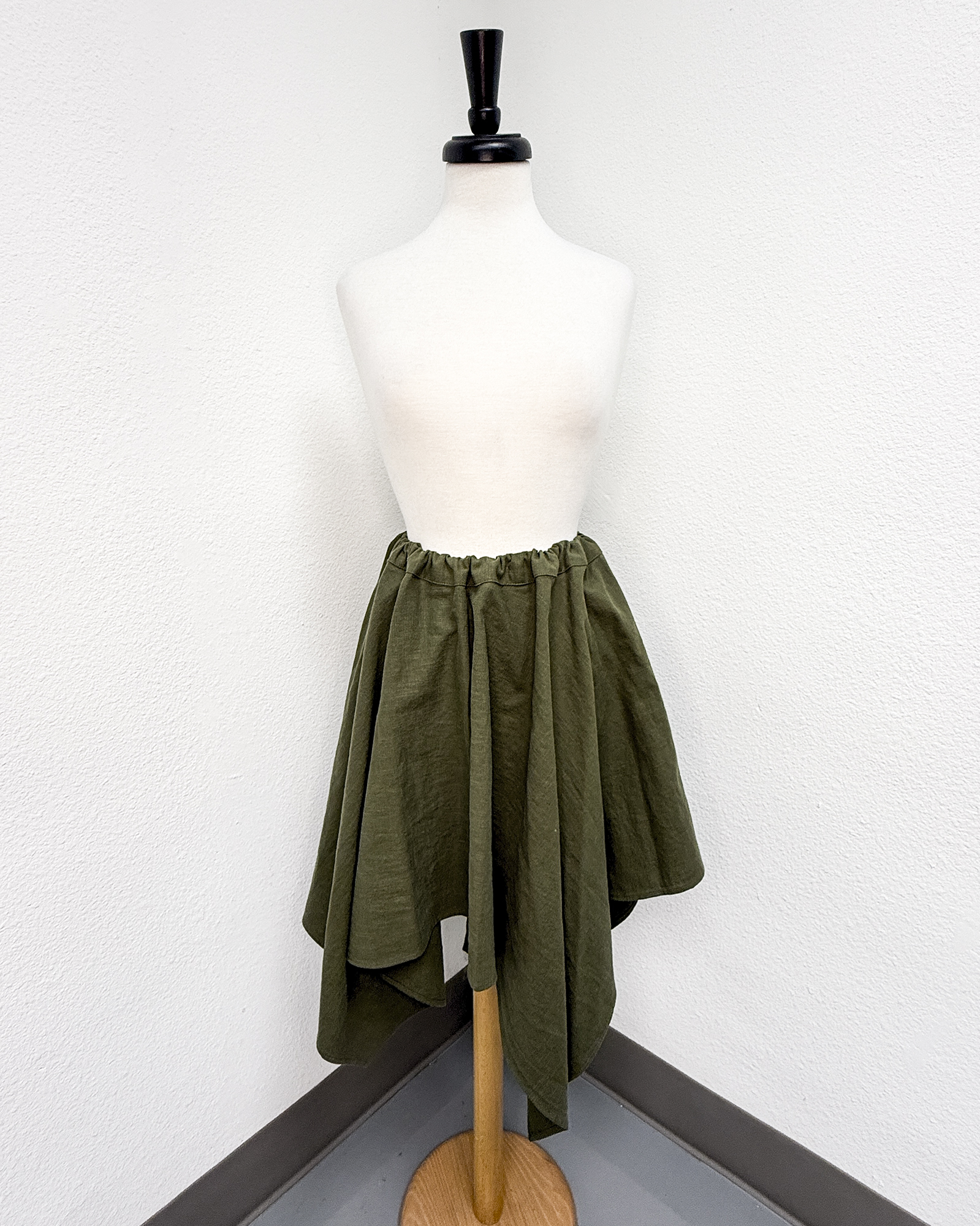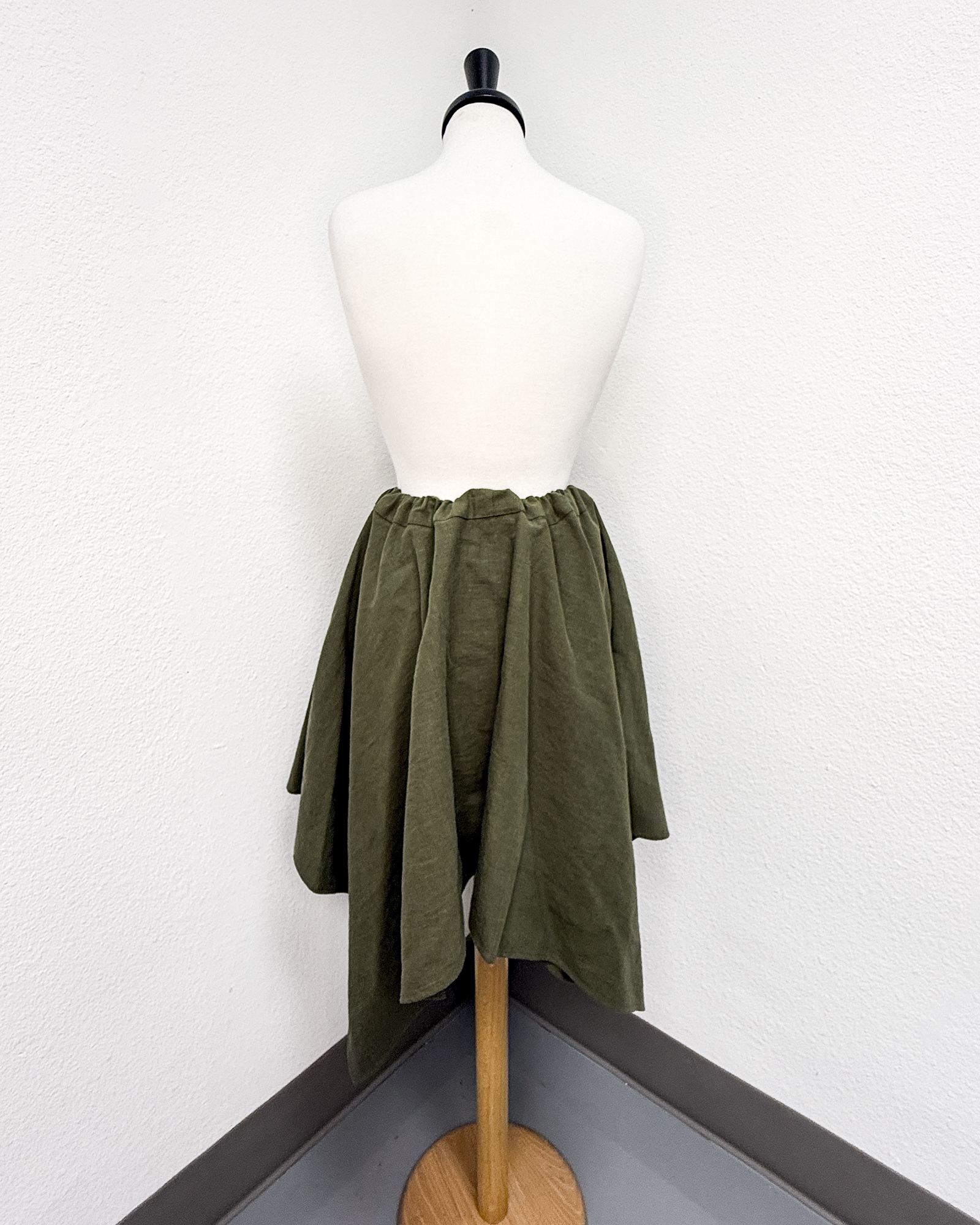 This skirt is made from a dark olive green linen and cotton blend fabric to give it an olde world look for your Renaissance, Pirate, or Steampunk garb. Not sure how to wear it? Layer Pixie Skirts over each other for Faerie and Pirate ensembles, layer a Pixie Skirt over a Renaissance skirt for Peasant and Wench looks, or layer a Pixie Skirt over leggings for an Adventurer outfit. Faire Treasures garments are proudly and expertly crafted in Texas using imported fabrics and materials.